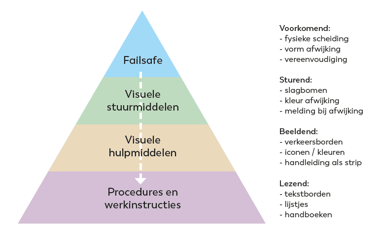 Bij het standaardiseren van de borging van continu verbeteren kun je gebruikmaken van verschillende niveaus. Dit is visueel weergegeven in de borgingspiramide. Hoe hoger in de boom, des te effectiever het proces geborgd wordt.